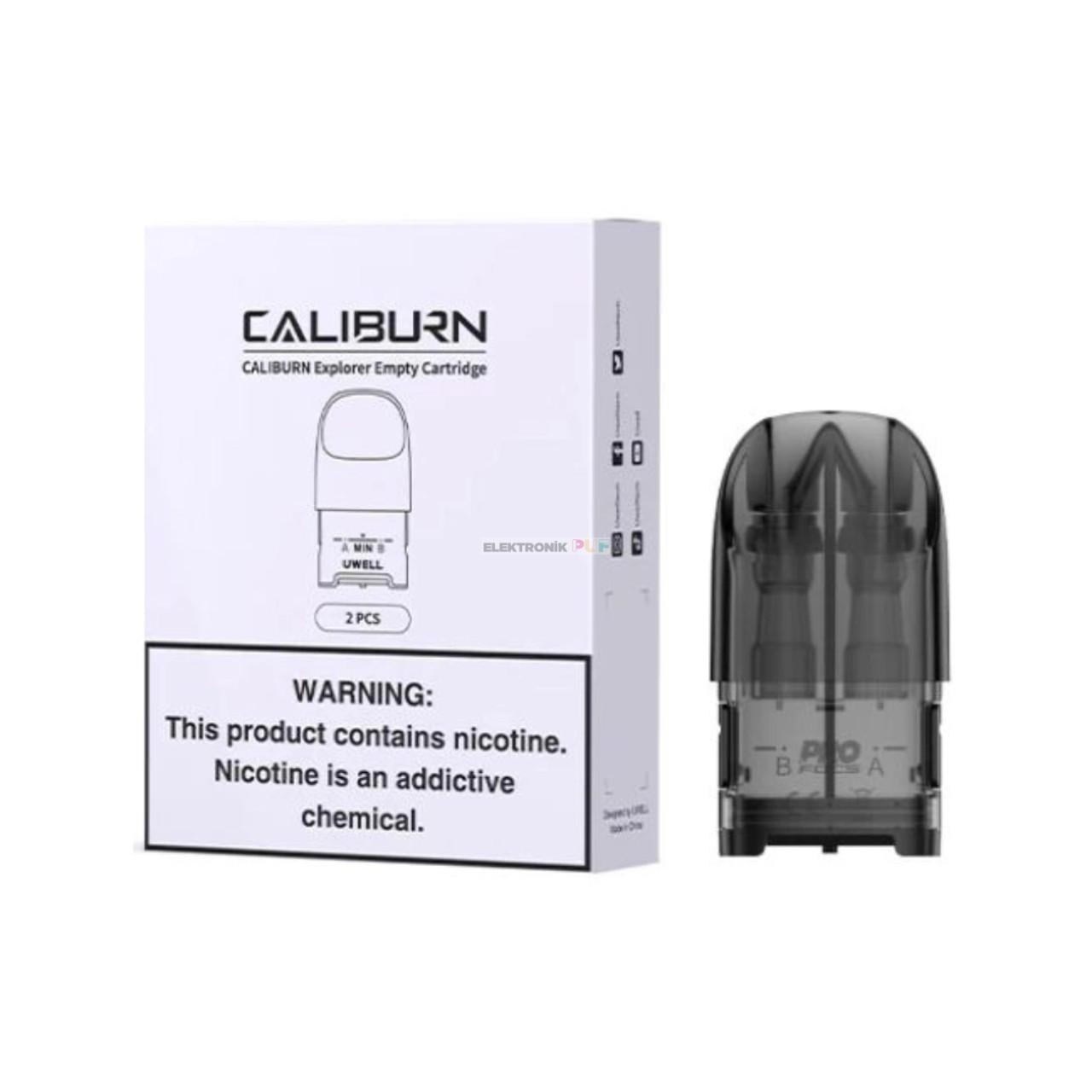 Kutu İçerisinden 2 Adet (2+2ml) Likit Kapasiteli Uwell Caliburn Explorer Yedek Boş Kartuş Çıkmaktadır.